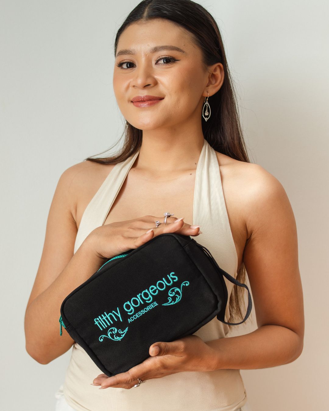 Meet your new everyday essential. The Filthy Gorgeous Oblong Bag is the versatile companion you didn't know you needed. Perfectly sized for jewellery, cosmetics, toiletries, tech accessories, or travel necessities - this bag adapts to whatever life throws your way.