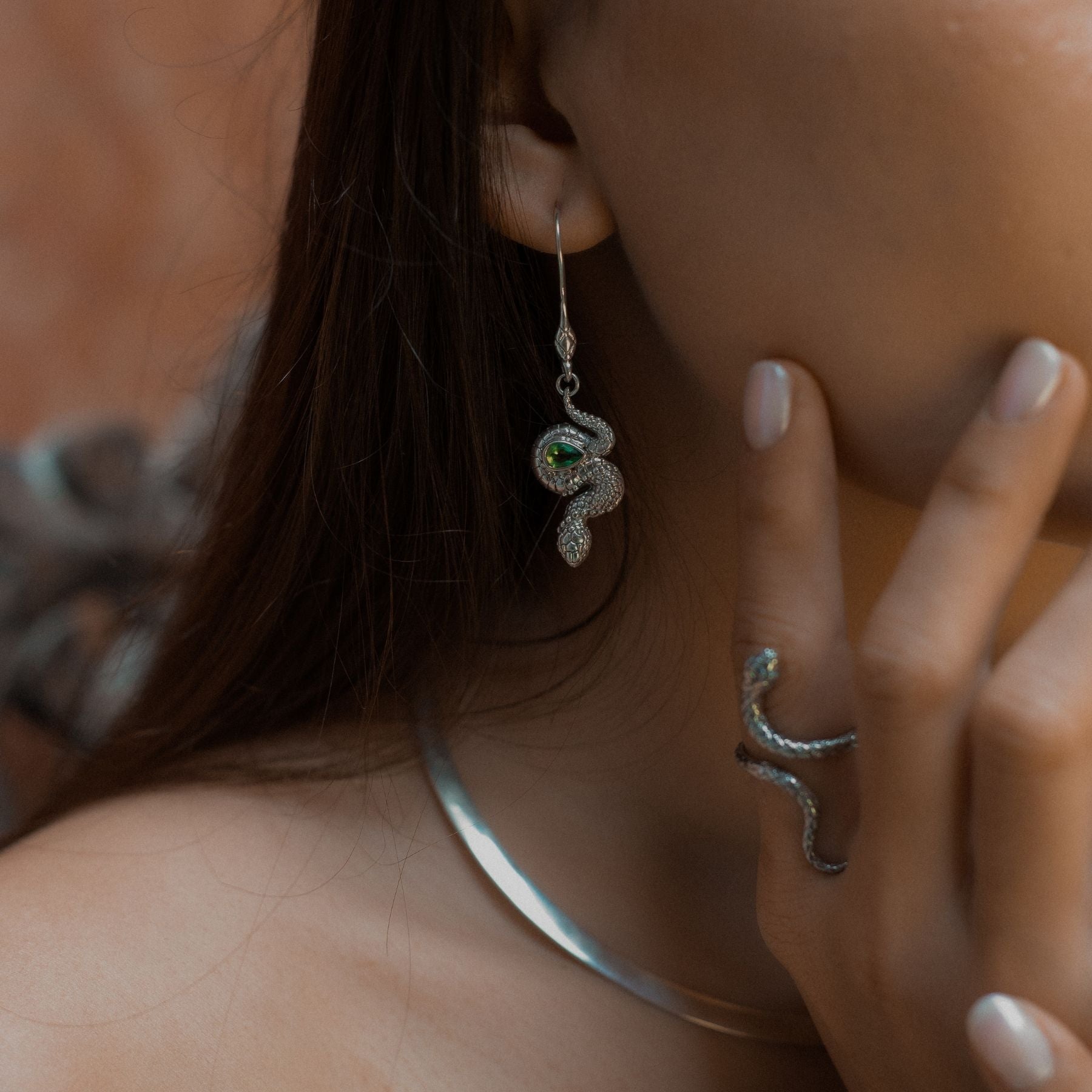 Set with a vibrant peridot and framed in sculptural sterling silver, the Ushari Earring turns any outfit into a head-turner. Sophistication with an unapologetic edge.